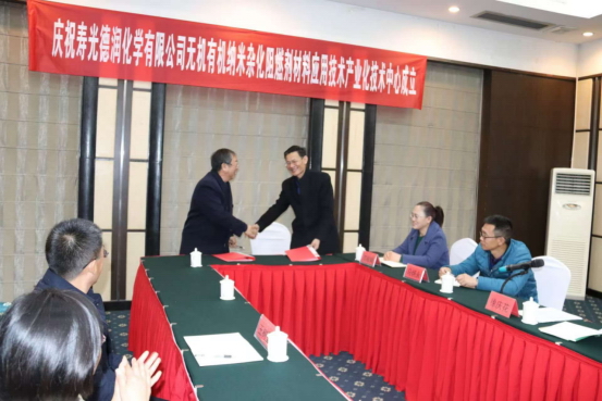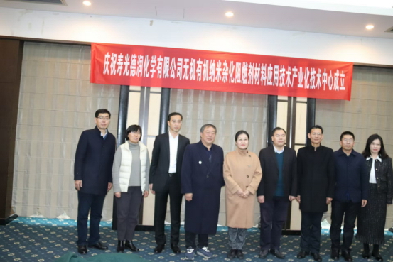 Celebrating the establishment of the Industrial Technology Center for Nano Hybrid Flame Retardant Materials Application Technology at Shouguang Derun Chemical Co., Ltd. This technology center was established by Professor Zhang Zhijun, a Zhongyuan scholar from Henan University, along with Professor Li Xiaohong and Professor Li Zhiwei, to develop organic-inorganic composite nano flame retardant materials based on the existing organic phosphate halogen-free flame retardant of Shouguang Derun Chemical Co., Ltd.